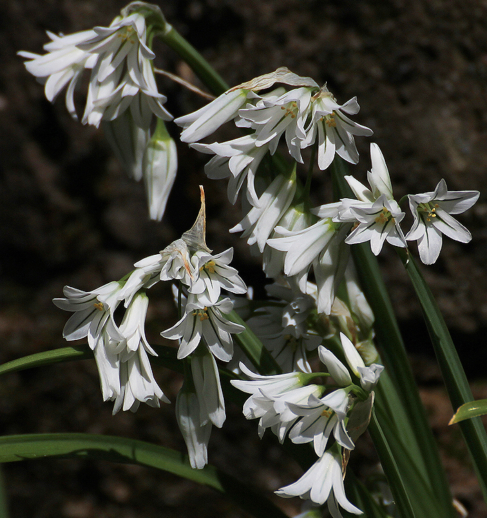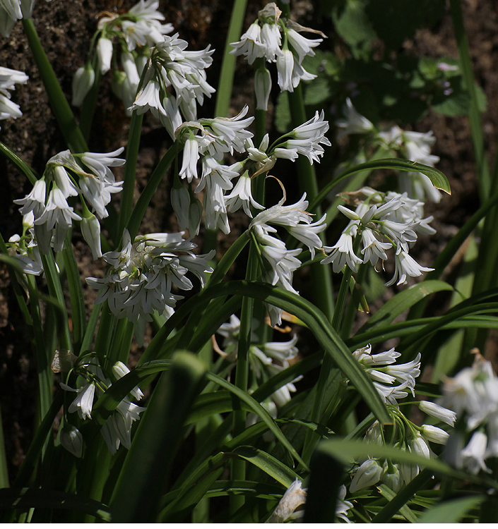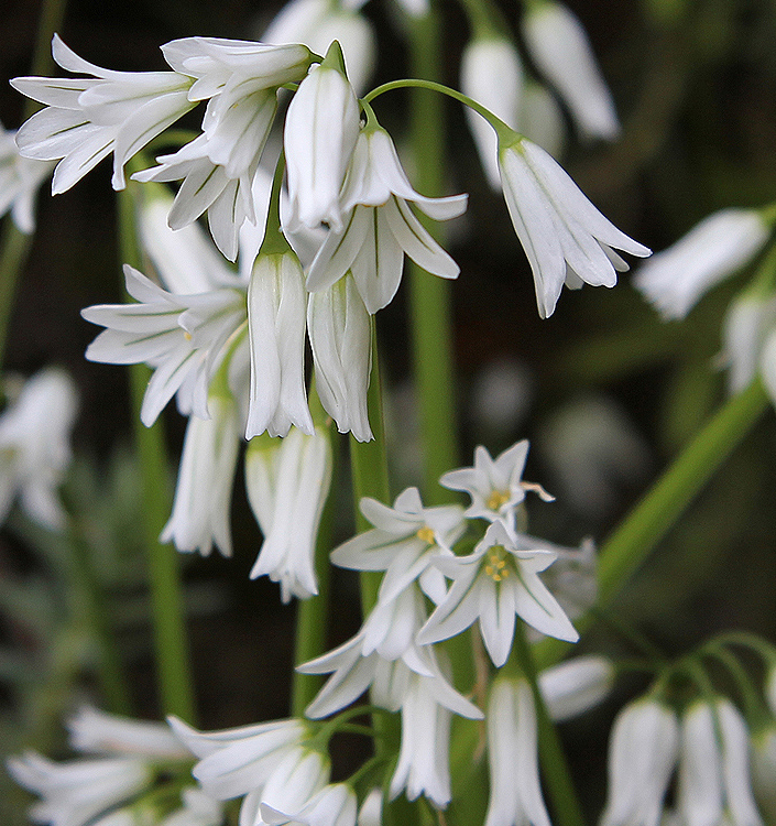 Specie originaria dell’Europa meridionale, adatta a suoli freschi e sufficientemente umidi in primavera. I steli fiorali raggiungono l’altezza di 40 cm e portano infiorescenze relativamente rade di fiori bianchi con una caratteristica striscia giallo verde al centro dei tepali. La fioritura molto attraente inizia anche prima della metà della primavera e se l’umidità è sufficiente i fiori sono di lunga durata. I bulbetti vanno piantati assai fitti. Può essere usato in composizioni con altre bulbose. In particolare risulta molto carina l’associazione con tulipani rossi di media statura, piantati radi sotto quelli dell’aglio.