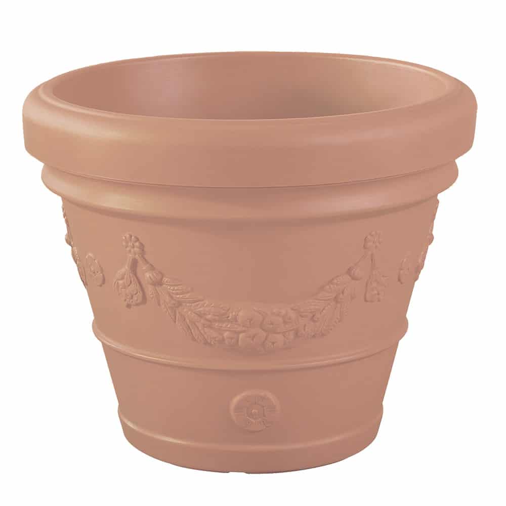 Il vaso festonato, simbolo di uno stile toscano intramontabile e senza tempo, racchiude in sé l’effetto visivo del prodotto in terracotta con le caratteristiche tipiche del vaso di plastica. Leggero, anche nelle misure più grandi, anti urto e resistente agli sbalzi di temperatura. Coordinabile con il vaso quadro e la fioriera, è sempre disponibile nei classici colori terracotta e terra di Siena.
