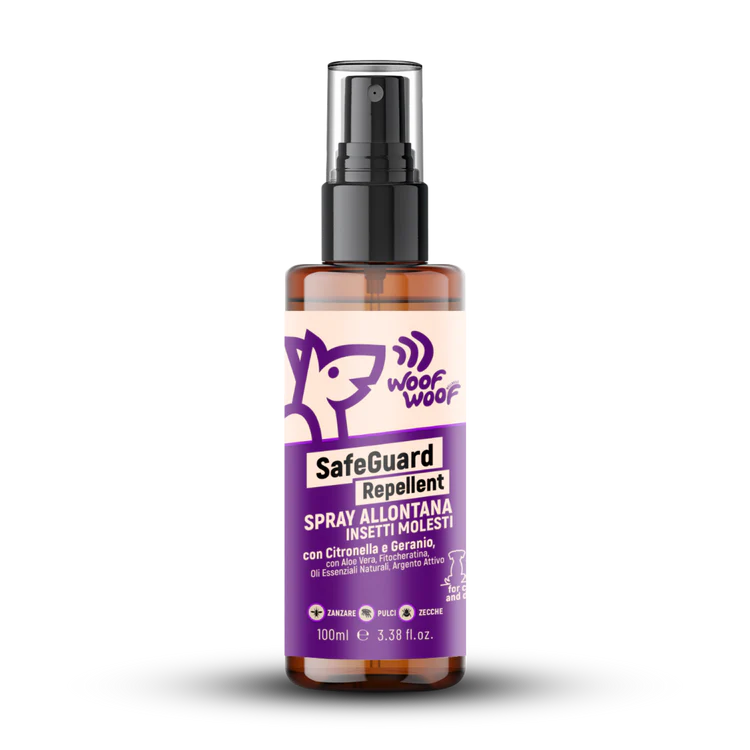 SafeGuard Repellent è una soluzione innovativa per la protezione quotidiana del tuo cane o gatto contro pulci, zecche, zanzare e altri insetti indesiderati. La sua formula unica sfrutta 8 oli essenziali altamente efficaci, selezionati per le loro proprietà repellenti, lenitive e purificanti, garantendo una protezione naturale a 360°.